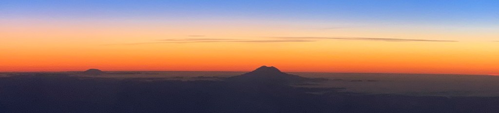 I have no picture to show the inside of my head. Instead, here is a photo that I took of the volcano, Mt Rainier, as I flew into Seattle a few years ago. A suitable caption should refer to the colours being a representation of the bruise on my arm and the blue sky as a sign of a bright future. Or simply a reference to the ELO song, “Mr Blue Sky”